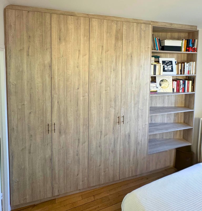Une solution élégante qui démontre notre capacité à transformer les contraintes d’espace en rangements esthétiques et fonctionnels, parfaitement intégrés à votre intérieur.