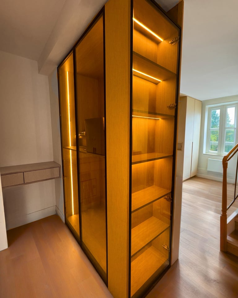 Exploitez chaque recoin de votre intérieur avec des rangements sur mesure élégants et fonctionnels, pensés pour s’adapter parfaitement à vos besoins et à vos espaces.