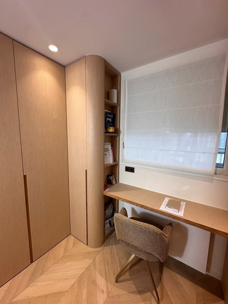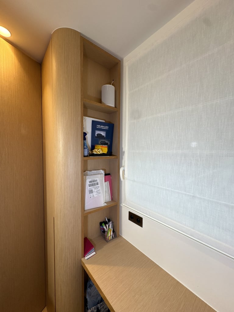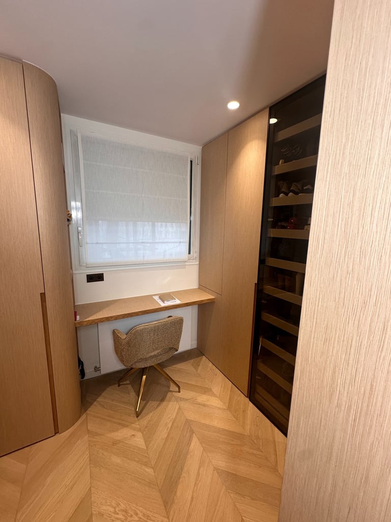 Une réalisation sur mesure qui transforme les contraintes de l’espace en une composition élégante, parfaitement optimisée et personnalisée.